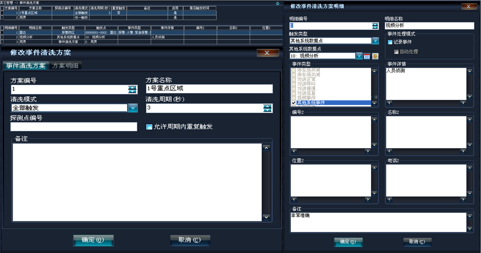 平臺(tái)提供事件清洗機(jī)制,“萬物萬事”皆可洗,洗去“迷霧”,洗出“真相”。將多種設(shè)備事件通過事件清洗方案結(jié)合清洗,清洗出真實(shí)事件,有效降低誤報(bào)。支持單設(shè)備、跨設(shè)備、跨區(qū)域、一洗再洗多重嵌套清洗。如檢測(cè)到震動(dòng)和紅外探頭同時(shí)觸發(fā)判定為報(bào)警;檢測(cè)到雷達(dá)報(bào)警,同時(shí)攝像機(jī)識(shí)別到人形時(shí)判定為報(bào)警。也可用于多重身份識(shí)別開門,如卡+人臉+虹蟆+掌靜脈,甚至支持不同設(shè)備用于識(shí)別。