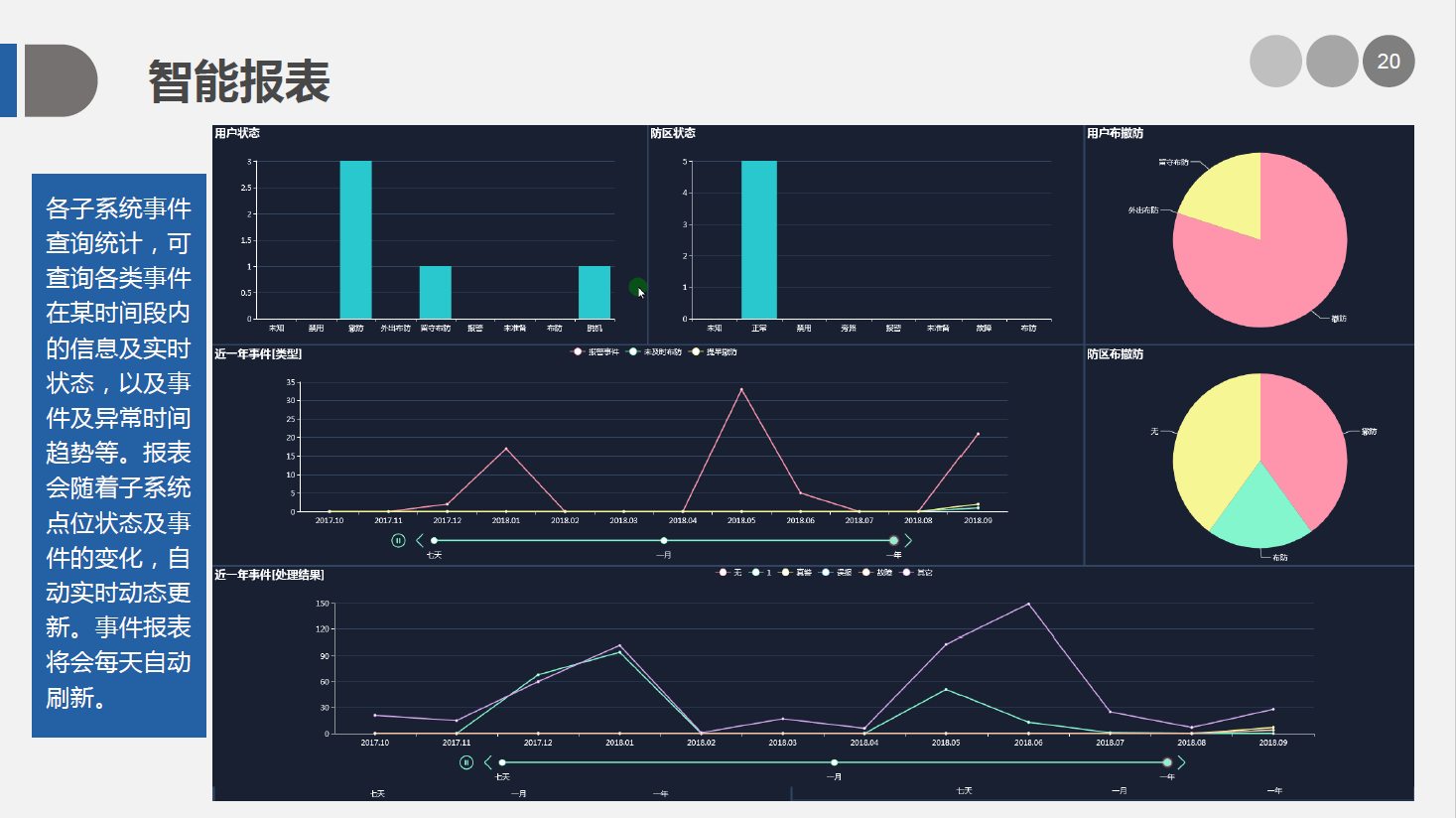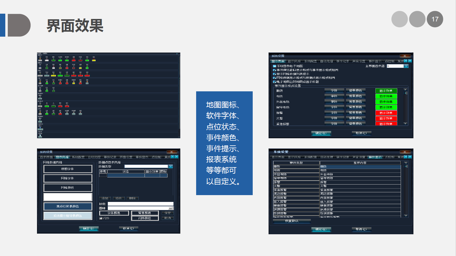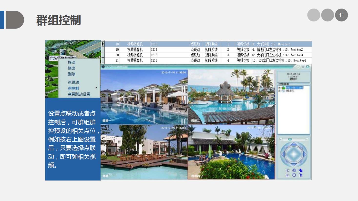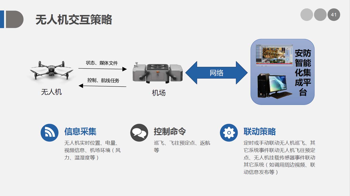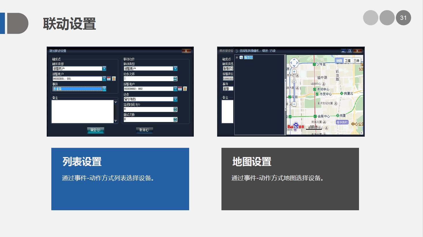 安防智能化集成平臺能實現對視頻、門禁、報警、對講、巡更、車輛管理等多個子系統(tǒng)集中控制,統(tǒng)一調度使用,實現各個子系統(tǒng)之間的聯(lián)動操作及管理。高度智能化的綜合安防管理平臺應具有適應于各種不同需求的網絡架構、高度的可靠性、良好的人機交互界面、易于管理及維護、學習簡單及操作方便等特點。