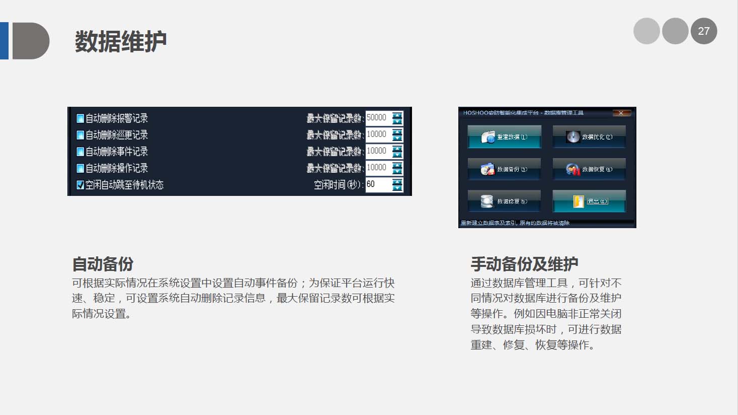 HOSHOO安防智能化集成平臺是綜合安防管理系統(tǒng)平臺,管理安防的各個子系統(tǒng),如報警、門禁、視頻等子系統(tǒng),并對各子系統(tǒng)進行相應的控制和聯(lián)動。適用于樓宇、文博、監(jiān)所、電力、金融、教育、交通、制造等各個領域。廣泛的支持各子系統(tǒng)的主流廠家,具有靈活的集成接口。