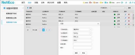 進(jìn)入【監(jiān)控?報(bào)警系統(tǒng)?配置報(bào)警子設(shè)備】頁(yè)面,選擇子系統(tǒng)和主設(shè)備,子設(shè)備名稱可以自行命名,同一主設(shè)備下的子設(shè)備不重名即可,子設(shè)備編碼與集成平臺(tái)中報(bào)警防區(qū)的防區(qū)編號(hào)一致,編碼的前幾位0頁(yè)必須填寫(xiě)。