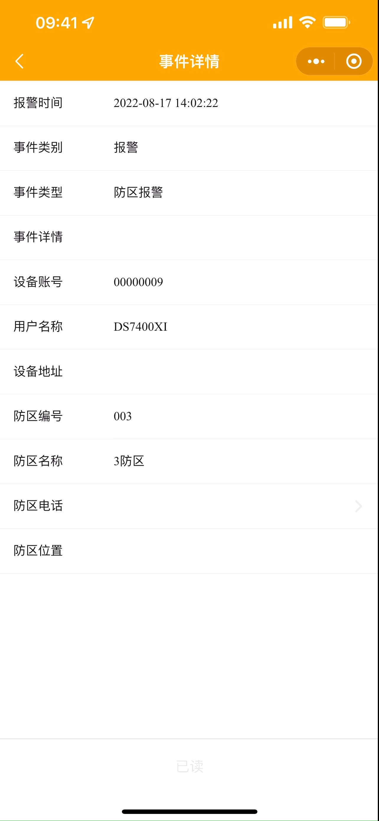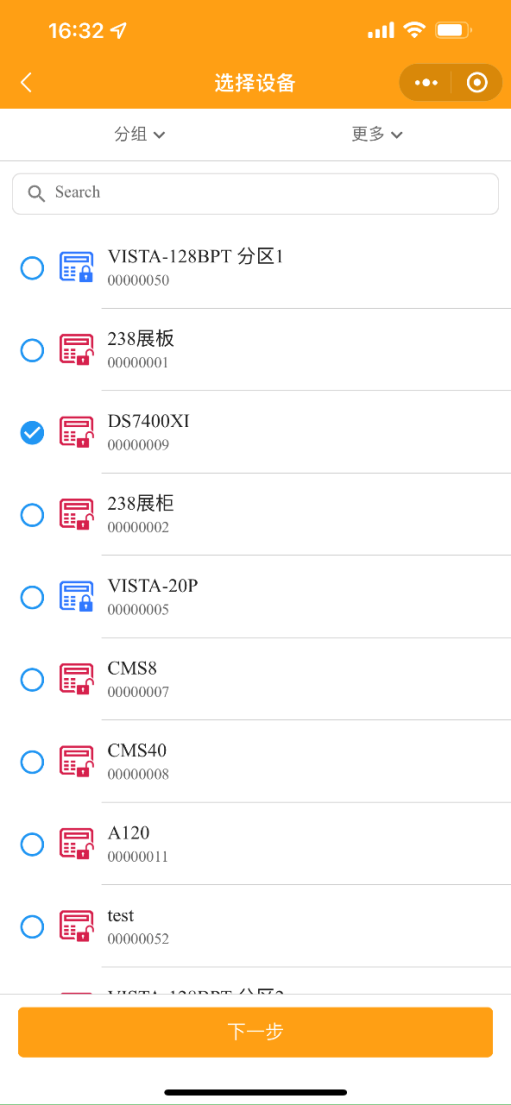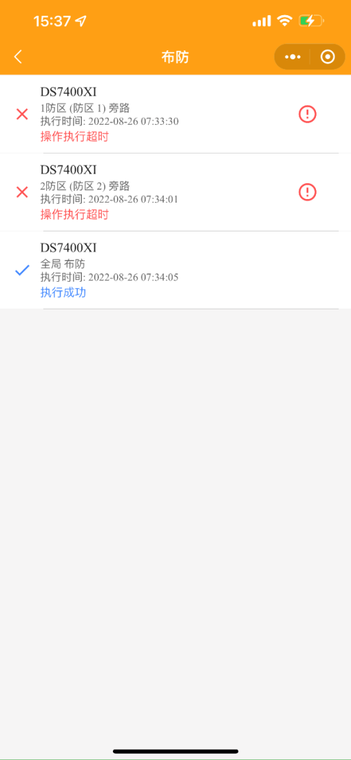 2. 在小程序端主機點擊一個報警設備,顯示效果如下圖,