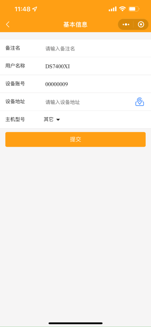 2.1 設置主機基本信息:可選填備注名、設備地址,選擇主機型號。點擊設備地址右側按鈕,可設置主機的地圖選點,地圖選點可通過移動或輸入地址來定位。