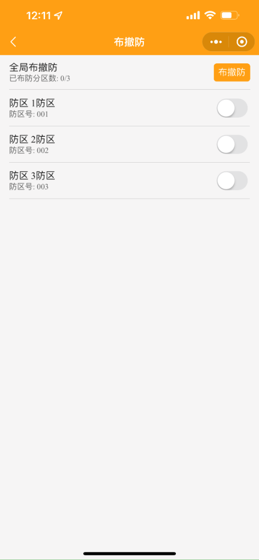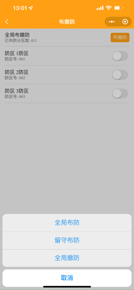 3. 手機小程序上控制安防智能化集成平臺的報警系統(tǒng)布防、撤防、旁路等功能;