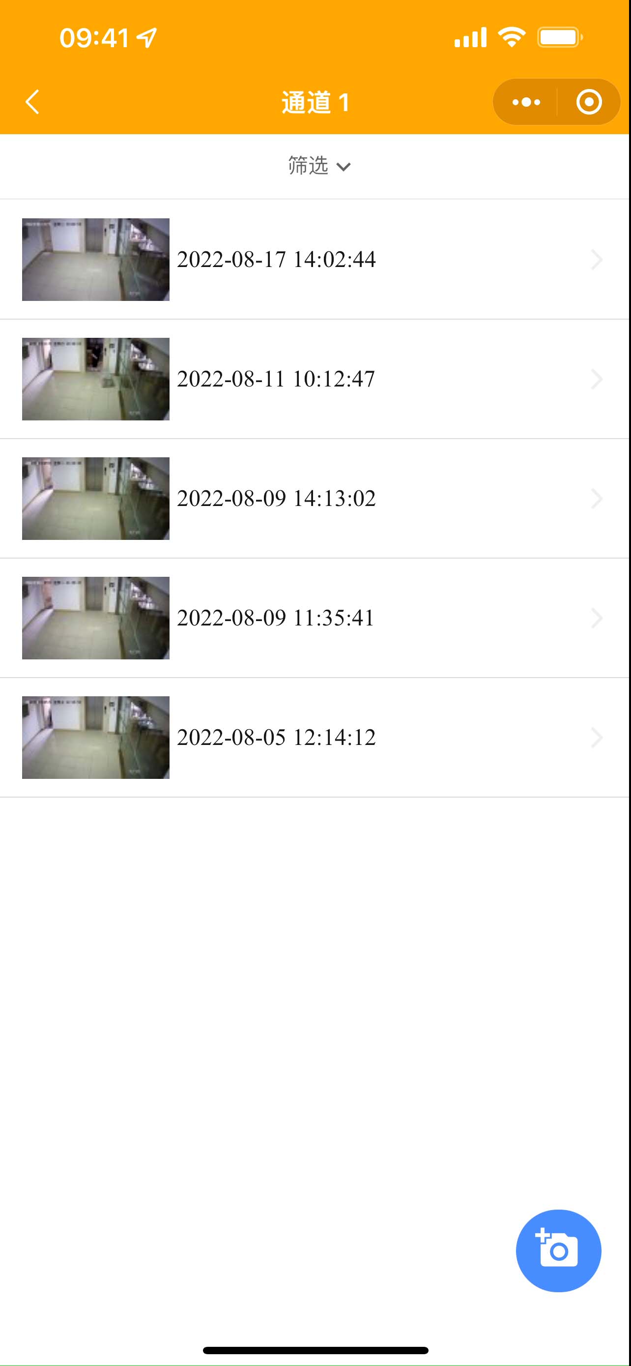 5. 點擊通道進入攝像機,使用右下角的拍照按鈕可以進行抓拍,并記錄事件到安防智能化集成平臺端和小程序端;點擊圖片列表中的圖片會顯示大圖。