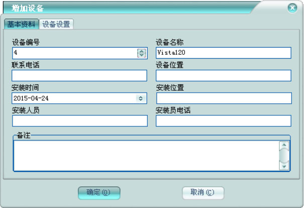 可錄入設(shè)備的聯(lián)系信息和安裝人員的相應(yīng)信息及設(shè)備備注。