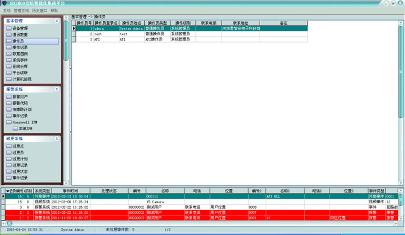 在平臺(tái)軟件中操作面板里的基本管理面板組上,點(diǎn)擊【操作員】,功能區(qū)將顯示操作員數(shù)據(jù)網(wǎng)格,如下圖:
