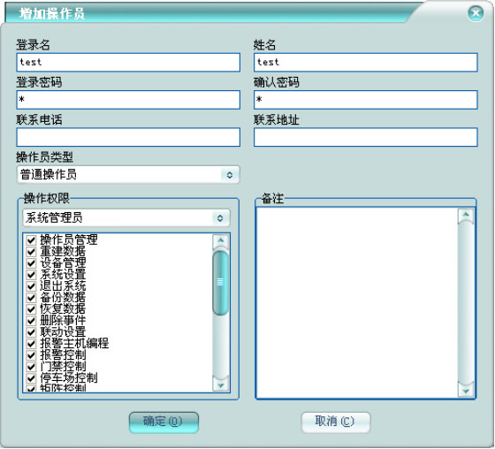 右鍵菜單,點(diǎn)擊【增加】,將彈出增加操作員框,如下圖: