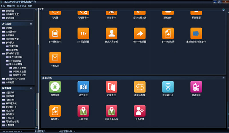 安防智能化集成平臺(tái)可根據(jù)實(shí)際需求任意擴(kuò)充功能模塊進(jìn)行,并可以通過(guò)平臺(tái)實(shí)現(xiàn)各個(gè)系統(tǒng)之間的聯(lián)動(dòng)、協(xié)調(diào)工作。從而大大減少了硬件設(shè)備和工程的數(shù)量,提高整個(gè)系統(tǒng)的自動(dòng)化程度和監(jiān)控中心的工作效率,完美地將這些系統(tǒng)之間的功能通過(guò)安保集成系統(tǒng),來(lái)體現(xiàn)發(fā)生事件時(shí)如何做自動(dòng)化處理及相應(yīng)流程。