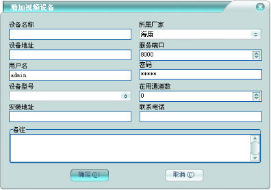 可錄入攝像機(jī)的聯(lián)系信息及攝像機(jī)備注。