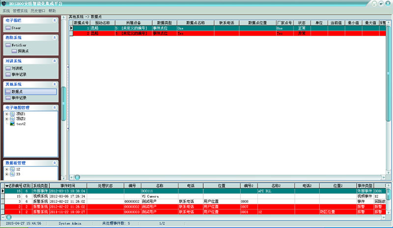 ● 多級(jí)電子地圖和數(shù)據(jù)板,更人性化的呈現(xiàn)數(shù)據(jù)點(diǎn)。豐富、靈活的地圖管理功能,可在地圖和數(shù)據(jù)板上直接控制數(shù)據(jù)點(diǎn)及其關(guān)聯(lián)系統(tǒng)??蓪⒌谌较到y(tǒng)的數(shù)據(jù)點(diǎn)放到平臺(tái)地圖上管理,解決第三方系統(tǒng)沒(méi)有電子地圖及地圖功能不靈活等情況。