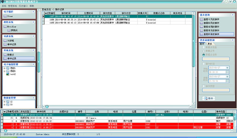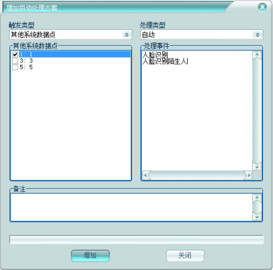 事件處理模式:可設(shè)置該設(shè)備的事件是否記錄及是否自動(dòng)處理。以便在多級(jí)平臺(tái)的應(yīng)用中,對(duì)共享設(shè)備的事件處理提供靈活的處理模式。