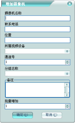批量增加:批量增加多個(gè)攝像機(jī),多于1時(shí),對(duì)攝像機(jī)名稱(chēng)和通道號(hào)自增。