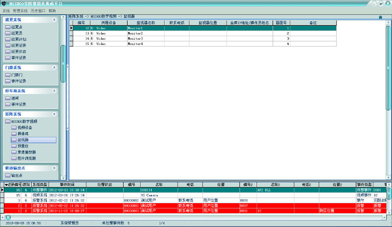 平臺(tái)將視頻顯示窗的畫(huà)面當(dāng)作監(jiān)控監(jiān)視器。在平臺(tái)軟件中操作面板里的監(jiān)控系統(tǒng)面板組上,點(diǎn)擊【HOSHOO數(shù)字視頻】下【監(jiān)視器】,功能區(qū)將顯示監(jiān)視器數(shù)據(jù)柵格,如下圖: