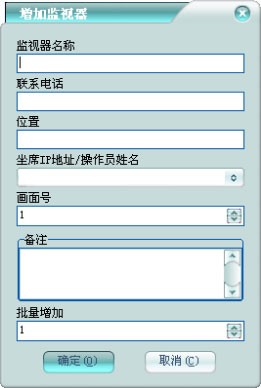 批量增加:批量增加多個(gè)監(jiān)視器,多于1時(shí),對(duì)監(jiān)視器名稱(chēng)和畫(huà)面號(hào)自增。