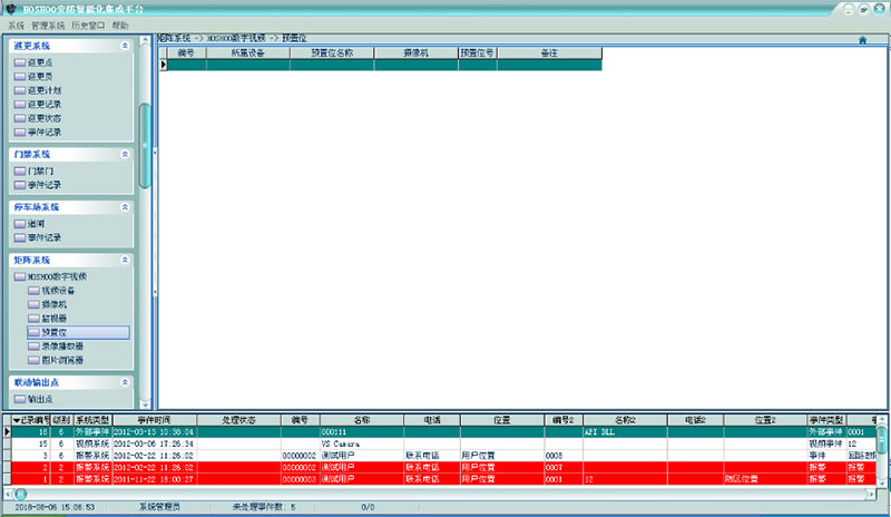 在平臺(tái)軟件中操作面板里的監(jiān)控系統(tǒng)面板組上,點(diǎn)擊【HOSHOO數(shù)字視頻】下【預(yù)置位】,功能區(qū)將顯示預(yù)置位數(shù)據(jù)柵格,如下圖: