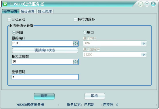 自動(dòng)啟動(dòng):是否在Windows登錄后,自動(dòng)短信服務(wù)器。