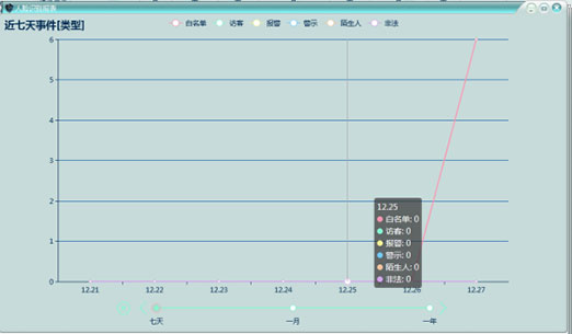 統(tǒng)計(jì)最近七天、一個(gè)月每天的各類(lèi)人次及最后一年每月的各類(lèi)人次,且具備實(shí)時(shí)刷新能力;通過(guò)表報(bào)的形式可以清楚明白的展示。