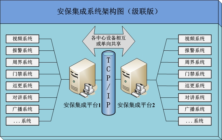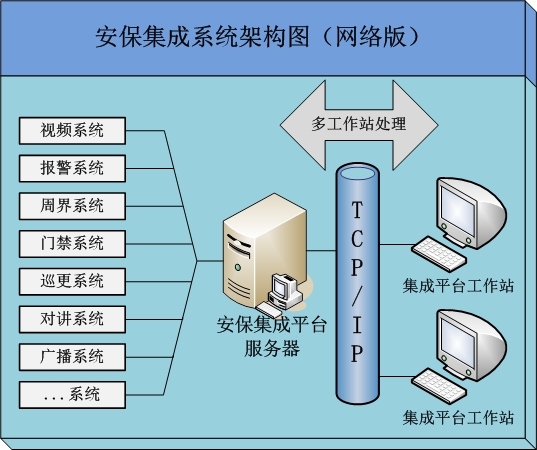 安防集成平臺(tái),針對(duì)的是SA安保系統(tǒng)所對(duì)應(yīng)的監(jiān)控、門(mén)禁、巡更、報(bào)警、對(duì)講等的獨(dú)立第三方集成平臺(tái);相對(duì)基于視頻或門(mén)禁系統(tǒng)的集成平臺(tái),更符合高安防等級(jí)場(chǎng)所的應(yīng)用,安防集成平臺(tái)的結(jié)構(gòu)是集成平臺(tái)-各系統(tǒng)管理平臺(tái)-各系統(tǒng)硬件設(shè)備的樹(shù)狀結(jié)構(gòu),安全性可靠性方面非常高,某一點(diǎn)發(fā)生故障不會(huì)影響其它設(shè)備及管理平臺(tái)的正常工作;而相對(duì)于BMS或IIS的智能化系統(tǒng),安防集成平臺(tái)的具有安防子系統(tǒng)專(zhuān)業(yè)控制界面、詳細(xì)的狀態(tài)信息顯示及記錄等優(yōu)點(diǎn),結(jié)構(gòu)非常簡(jiǎn)潔。