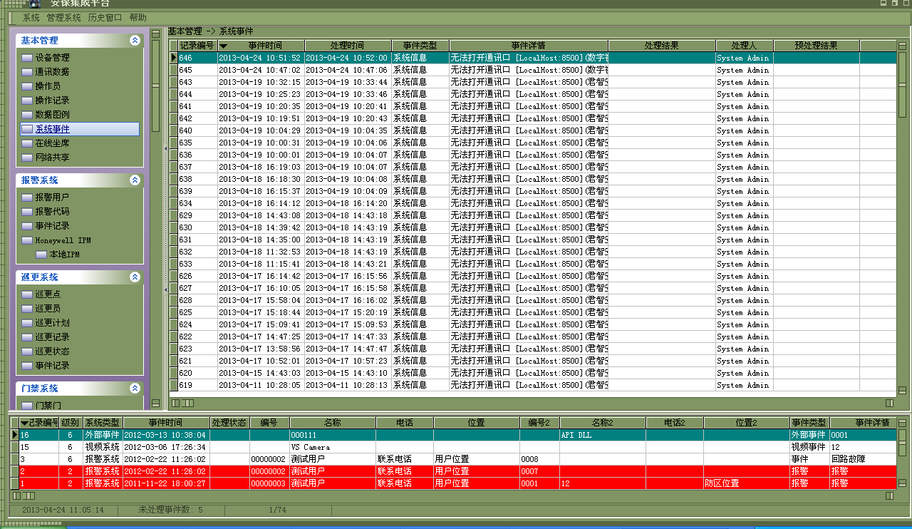 ? 各子系統(tǒng)事件及日志的管理,報(bào)表的輸出、打印等;可對(duì)各子系統(tǒng)上報(bào)的事件、報(bào)警事件處理結(jié)果、系統(tǒng)設(shè)備狀態(tài)日志、操作值班員登錄日志等進(jìn)行統(tǒng)一的查詢(xún)、打印報(bào)表。