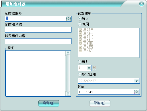 6.7 定時(shí)器: 設(shè)置后可定時(shí)聯(lián)動(dòng)預(yù)設(shè)好的各子系統(tǒng)控制動(dòng)作;例如可以通過(guò)定時(shí)器對(duì)防區(qū)或報(bào)警主機(jī)進(jìn)行布防、旁路等操作。