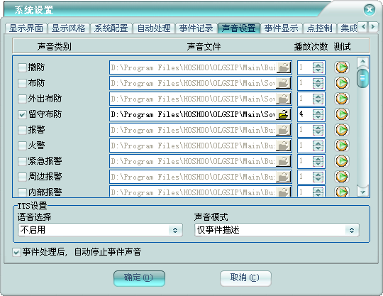 l 支持TTS,使事件聲音提示除傳統(tǒng)的聲音文件外,還可使用TTS將文本自動(dòng)生成聲音提示,提供更豐富、靈活的聲音提示,使工作更有效率。