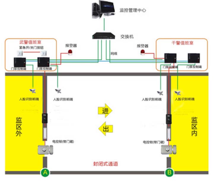 監(jiān)獄、看守所通過(guò)多年建設(shè),信息化手段已逐漸應(yīng)用到各個(gè)方面。通過(guò)人的面部信息唯一性的特征結(jié)合自動(dòng)化識(shí)別人臉技術(shù),使得人臉識(shí)別實(shí)時(shí)圖像比對(duì)和識(shí)別系統(tǒng)在監(jiān)獄的應(yīng)該極大地節(jié)省了干警的工作量。由于監(jiān)獄、看守所本身的特殊性,其安防系統(tǒng)在安全可靠性方面的要求明顯比其他行業(yè)高很多,監(jiān)所門(mén)禁建設(shè)管理現(xiàn)代化是保障看守所、監(jiān)獄、戒毒所安全的必要基礎(chǔ),通過(guò)與人臉識(shí)別實(shí)時(shí)圖像比對(duì)和識(shí)別系統(tǒng)配合使用,極大地提高安監(jiān)工作科技含量。為確保監(jiān)獄安防建設(shè)安全穩(wěn)定,打造成智能化、全方位、多功能、互動(dòng)性為一體的綜合性的監(jiān)獄安防智能管理系統(tǒng)。