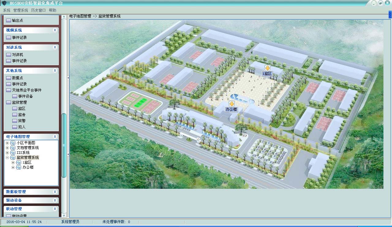 可通過(guò)多級(jí)電子地圖對(duì)監(jiān)舍、管理大樓、工廠(chǎng)等進(jìn)行直觀的操作:
