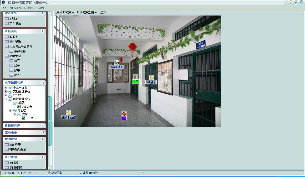 面向監(jiān)獄安全管理業(yè)務(wù)特點(diǎn)的智能化安防系統(tǒng)綜合管理平臺(tái),與監(jiān)管、教育改造、獄內(nèi)偵察等工作緊密結(jié)合;監(jiān)控、門(mén)禁、巡更、報(bào)警、對(duì)講等全系統(tǒng)集成管理和靈活的智能聯(lián)動(dòng),構(gòu)建監(jiān)獄“大安防”平臺(tái)。