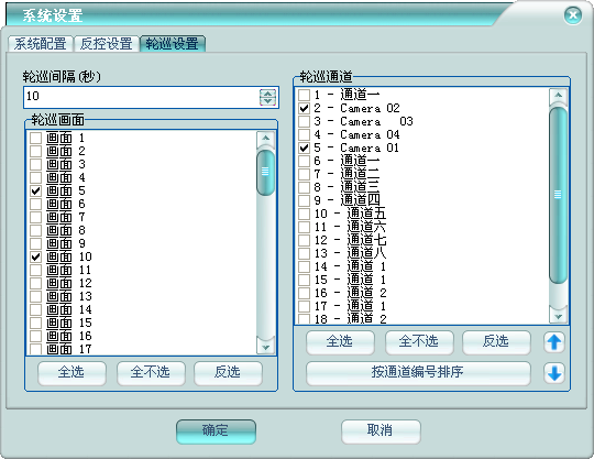 輪巡通道:選擇用于做輪巡的視頻通道。通過(guò)向上和向下按鈕可改變通道的輪巡順序。
