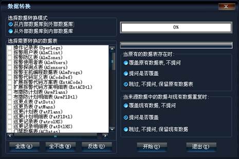 選擇數(shù)據(jù)轉(zhuǎn)換模式,選擇要轉(zhuǎn)換的數(shù)據(jù)表,選擇覆蓋方式,點擊【開始】按鈕,將進行數(shù)據(jù)轉(zhuǎn)換。