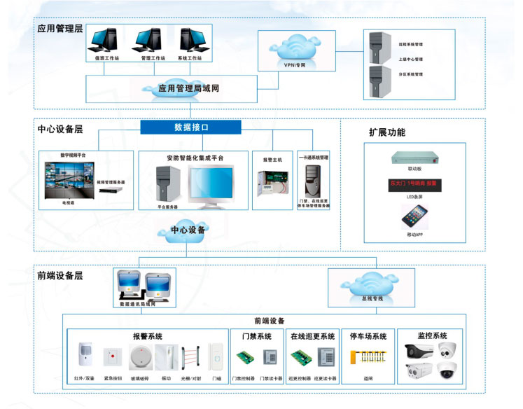 管理與設(shè)置:管理與設(shè)置單元部分主要指門禁系統(tǒng)的管理軟件,管理軟件可以運(yùn)行在Windows2000、2003和XP等環(huán)境中,支持服務(wù)器/客戶端的工作模式,并且可以對(duì)不同的用戶進(jìn)行可操作功能的授權(quán)和管理。管理軟件應(yīng)該使用Microsoft公司的SQL等大型數(shù)據(jù)庫(kù),具有良好的可開發(fā)性和集成能力。管理軟件應(yīng)該具有設(shè)備管理、人事信息管理、證章打印、用戶授權(quán)、操作員權(quán)限管理、報(bào)警信息管理、事件瀏覽、電子地圖等功能。
