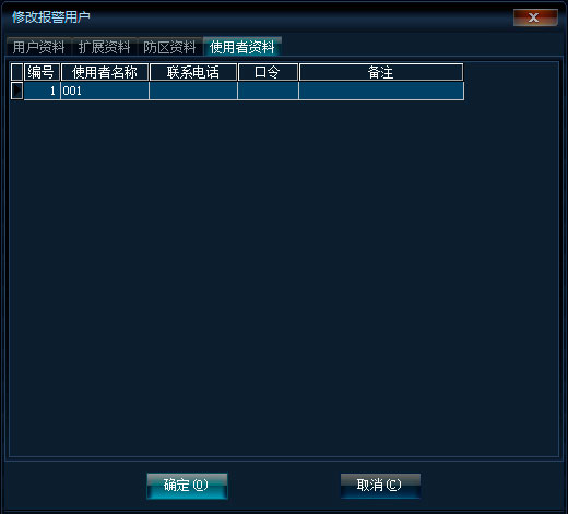 當(dāng)修改報(bào)警用戶時(shí),還會(huì)有防區(qū)資料和使用者資料錄入。