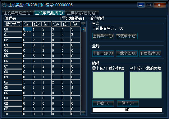 在左邊顯示的是主機(jī)編程數(shù)據(jù)表,右邊是遙控編程操作區(qū)。