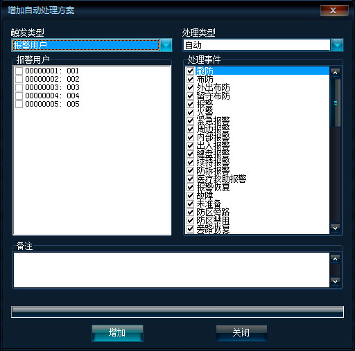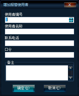 右鍵菜單,點(diǎn)擊【增加】,將彈出增加報(bào)警用戶框,如下圖: