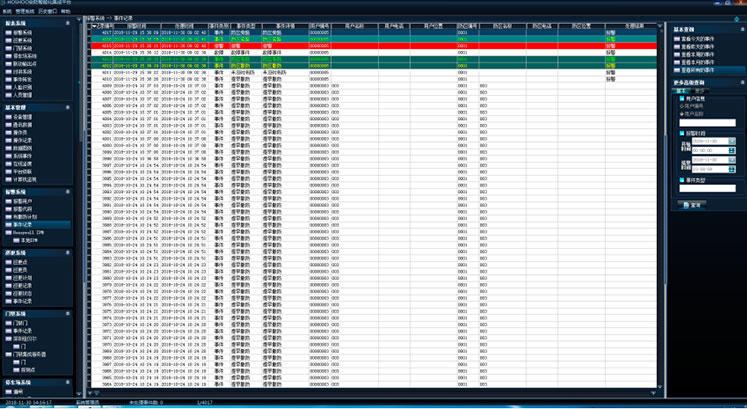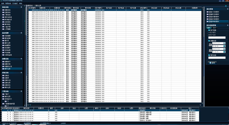 在平臺(tái)軟件中操作面板里的門禁系統(tǒng)面板組上,點(diǎn)擊【事件記錄】,功能區(qū)將顯示門禁事件記錄數(shù)據(jù)網(wǎng)格,如下圖: