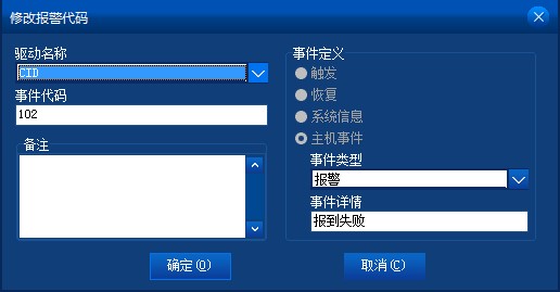 修改報(bào)警代碼:右鍵菜單,點(diǎn)擊【修改】,將彈出修改報(bào)警代碼框,如下圖: