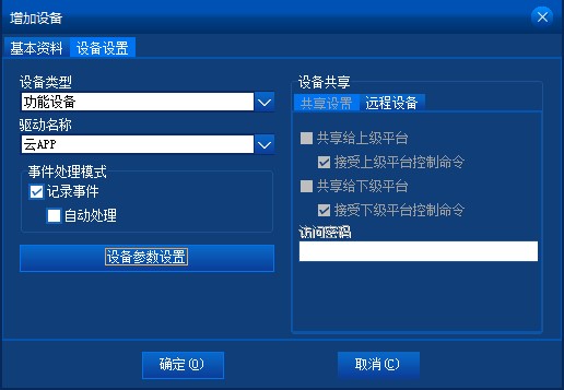 設(shè)備共享:共享給上級(jí)平臺(tái):將該設(shè)備共享給上級(jí)平臺(tái),以便上級(jí)平臺(tái)通過網(wǎng)絡(luò)可使用該設(shè)備;接受上級(jí)平臺(tái)控制命令,設(shè)置是否允許上級(jí)平臺(tái)對(duì)設(shè)備發(fā)送控制命令。共享給下級(jí)平臺(tái):將該設(shè)備共享給下級(jí)平臺(tái),以便下級(jí)平臺(tái)通過網(wǎng)絡(luò)可使用該設(shè)備;接受下級(jí)平臺(tái)控制命令,設(shè)置是否允許下級(jí)平臺(tái)對(duì)設(shè)備發(fā)送控制命令。可設(shè)置共享出去時(shí)的訪問密碼,兩邊密碼要一致時(shí),方可訪問。對(duì)應(yīng)遠(yuǎn)程平臺(tái)共享設(shè)備:可使用其他平臺(tái)的共享設(shè)備,選擇與本平臺(tái)連接的遠(yuǎn)程平臺(tái)的名稱后,再選擇該平臺(tái)的共享的設(shè)備,則當(dāng)前設(shè)備為遠(yuǎn)程平臺(tái)所對(duì)應(yīng)的共享設(shè)備,可通過網(wǎng)絡(luò)訪問這個(gè)遠(yuǎn)程設(shè)備。可設(shè)置共享設(shè)備的訪問密碼,要與被共享設(shè)備設(shè)置的訪問密碼一致時(shí),方可訪問。對(duì)共享設(shè)備提供訪問保護(hù)。